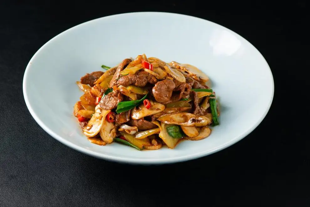 食材:口蘑、里脊肉/牛肉、葱姜蒜、盐、胡椒粉、鸡精、生抽、老抽、蚝油、料酒、淀粉、食用油